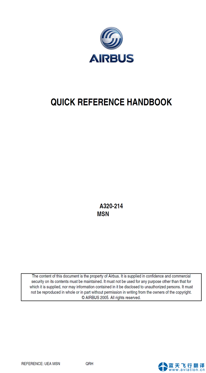 北京藍(lán)天飛行翻譯有限公司完成大型航空公司2020年6月3日版本空客A319/A320飛行機(jī)組操作手冊(cè)、快速檢查單和飛機(jī)飛行手冊(cè)翻譯任務(wù) A319/A320 FLIGHT CREW OPERATING MANUAL, QRH QUICK REFERENCE HANDBOOK and AIRPLANE FLIGHT MANUAL Translation